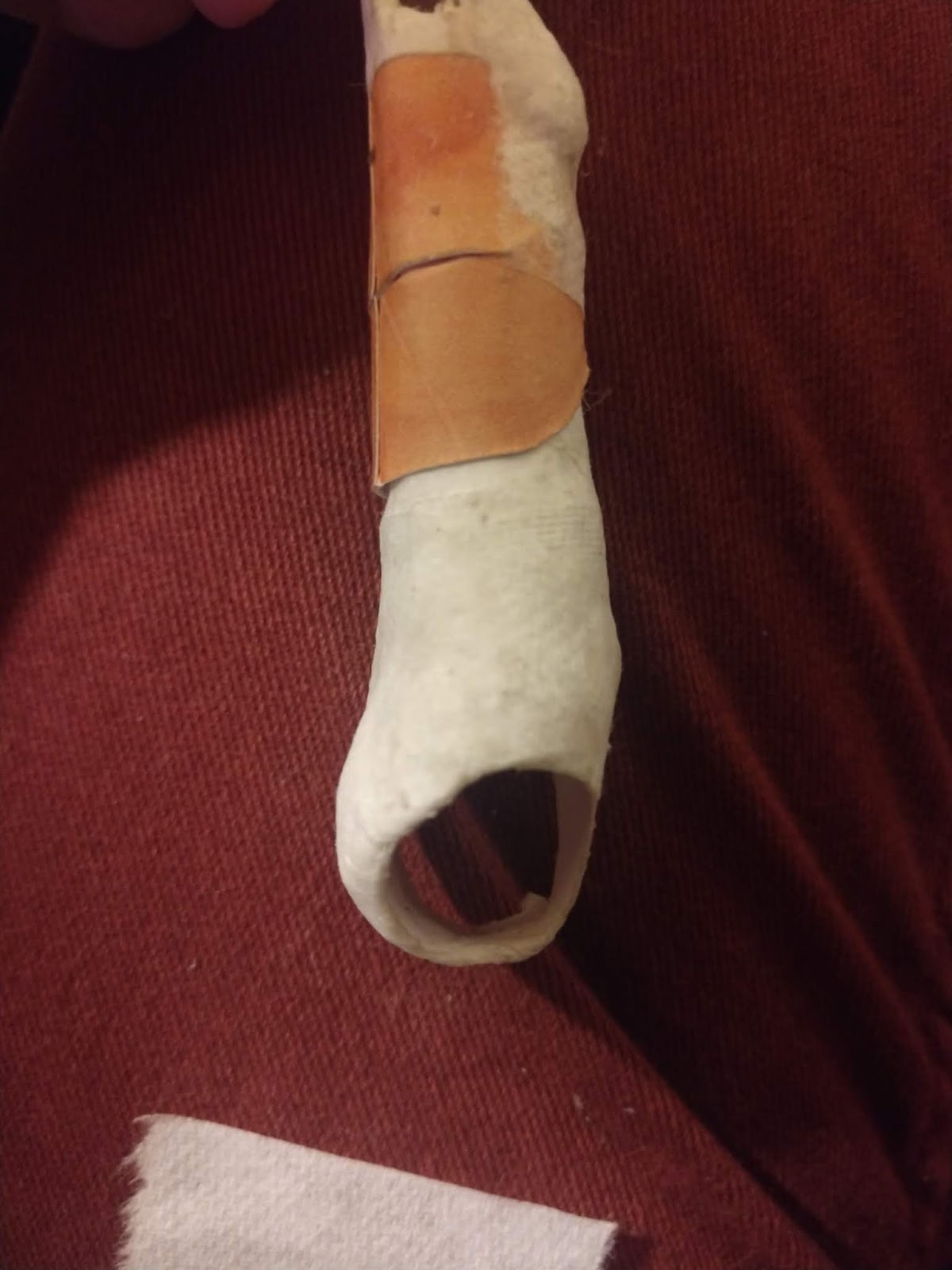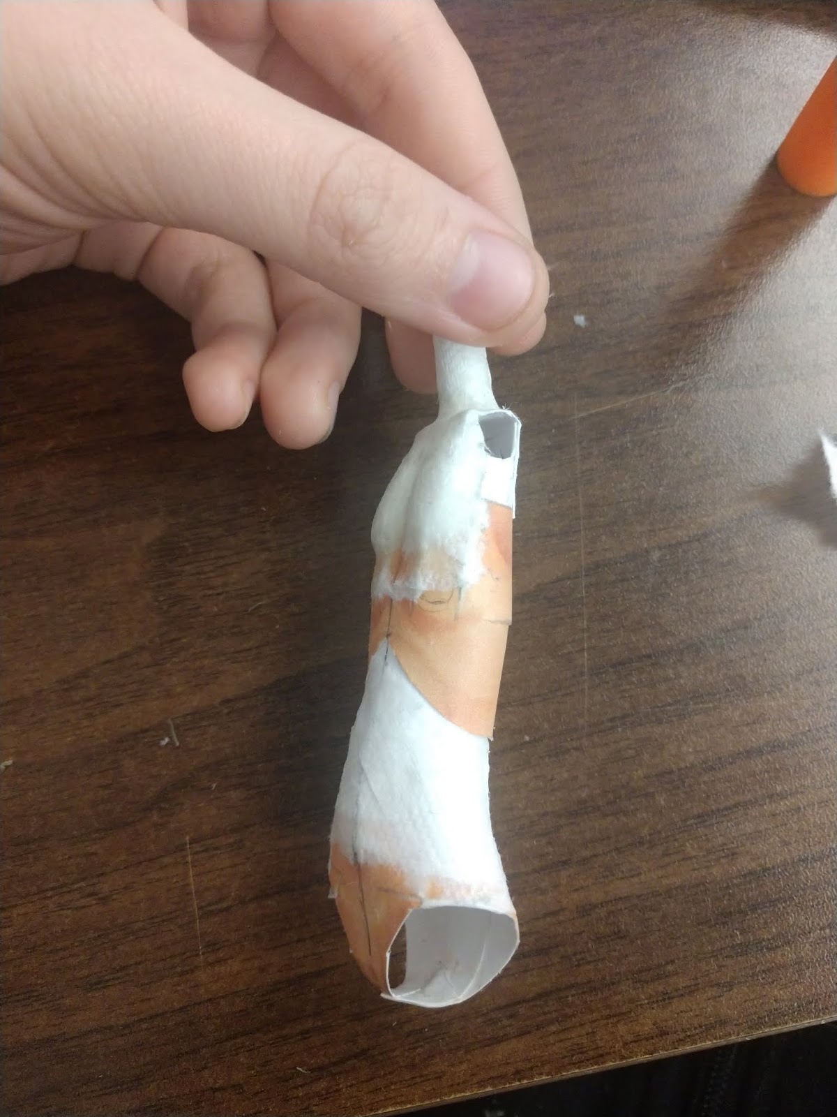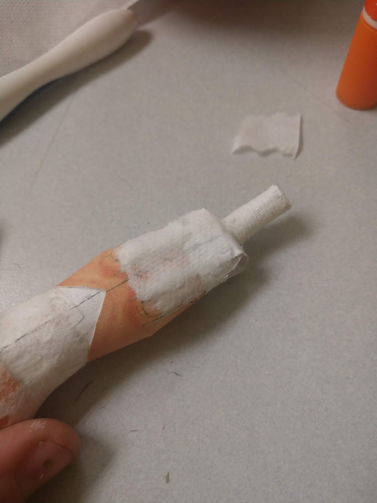First, you're going to need the thigh that we just made... Or more specifically, you're going to need the paper tube that we rolled up and put inside the thigh.