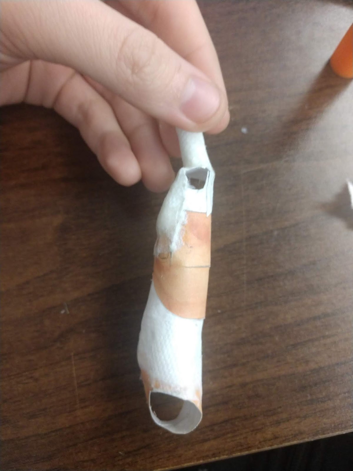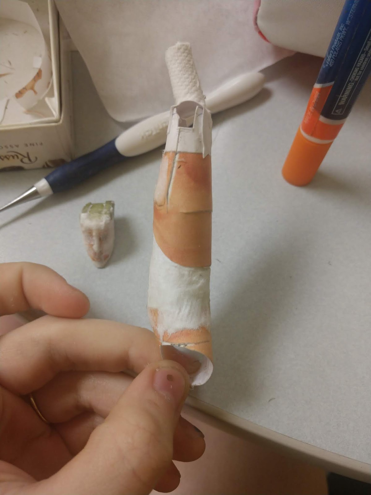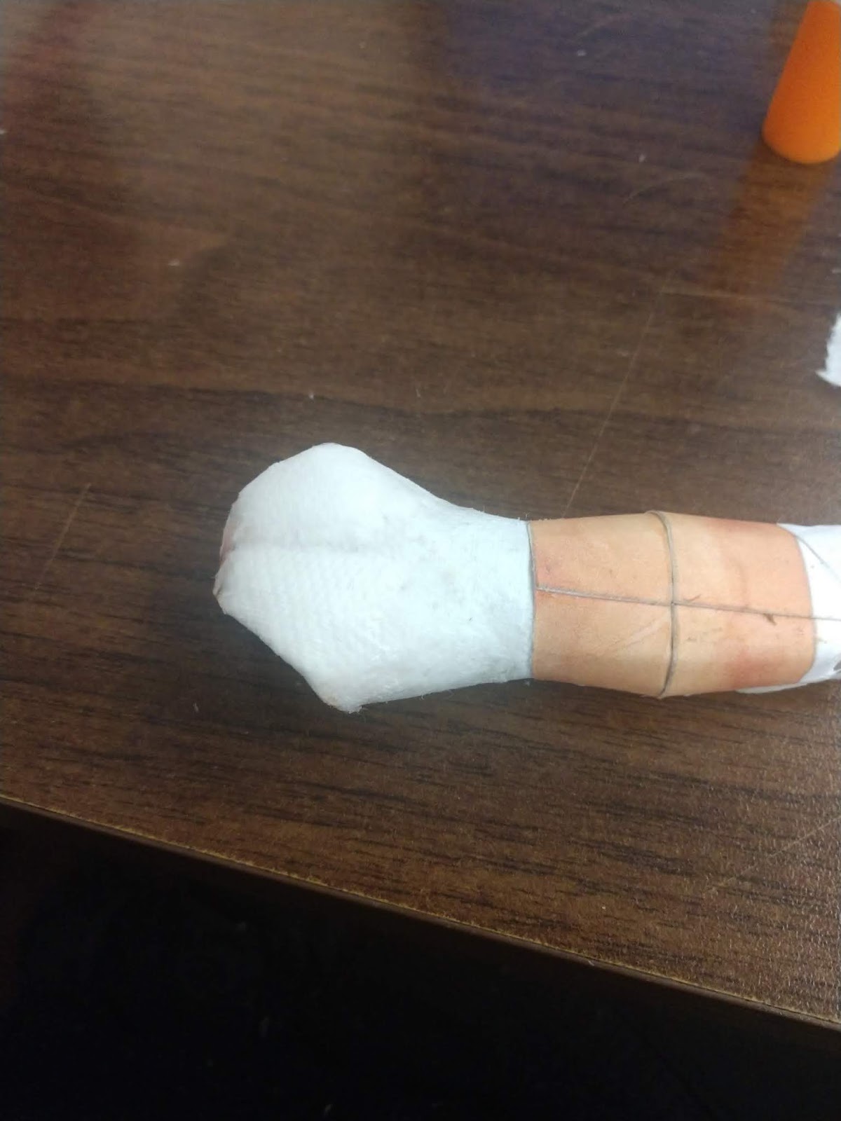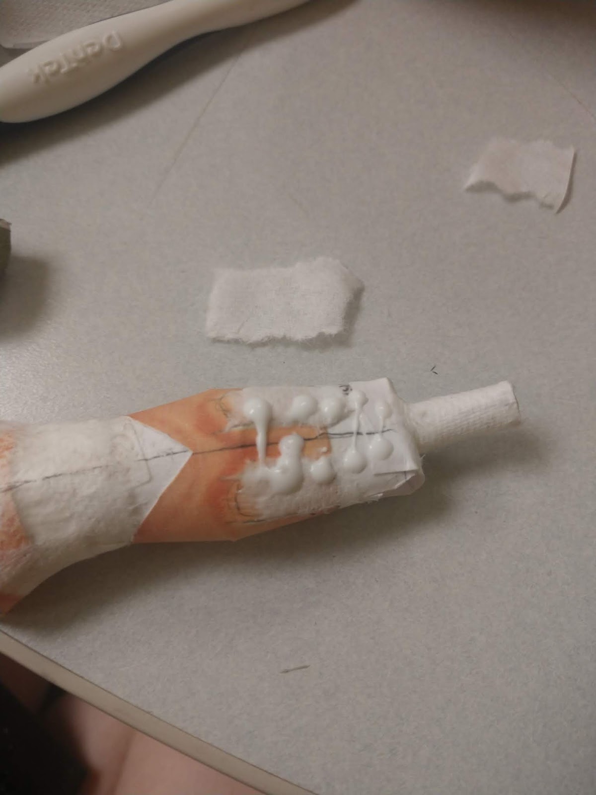 First, you're going to need the thigh that we just made... Or more specifically, you're going to need the paper tube that we rolled up and put inside the thigh.