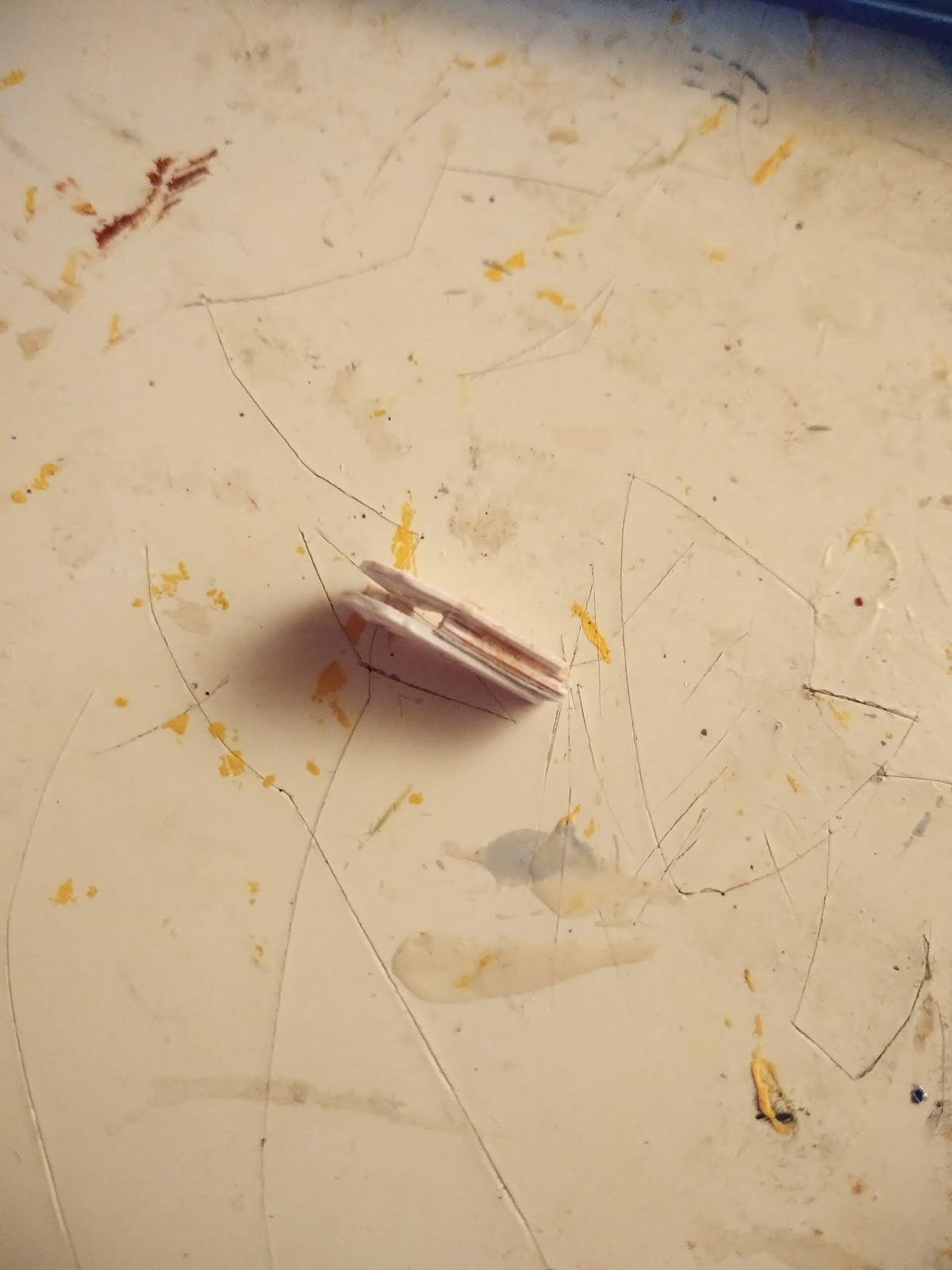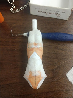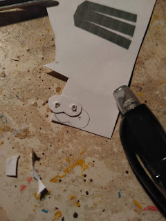 Back to business, you want the toothpick to pass through twelve (or so) layers of paper, this is hard and it takes a little bit of finessing sometimes. But remember that hole in the piece? Take your needle tool and push it GENTLY through again. It'll take some finessing for that too, and if the toothpick still won't fit take and x-acto blade and thin it out CAREFULLY (if you are under the age of 18, ask a parent for help, and don't sue me). You don't have to carve it, just give it a little shave.